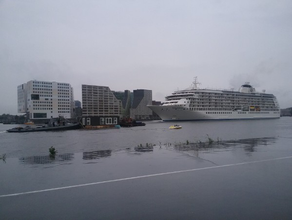 Seen from the other side of the IJ, The World at her berth at the 14th of august, 2011.