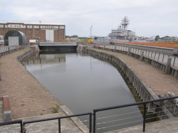 Below is shown all that remains of the large slipways on which the wharf laid down the ships. Most iconic of course is the Willem Ruys, later the cruiseship Achille Lauro. She was laid down in 1939 but because of the war she remained on the slipway untill 1946. Although the whole town of Vlissingen was decimated in bombings, this huge towering hull was staying relatively undamaged. Although the Germans tried to launch the ship, this was always sabotaged by the Dutch resistance. Her hull became a symbol of Dutch courage and determination and she of course had a long carreer for Rotterdamsche Lloyd afterwards.