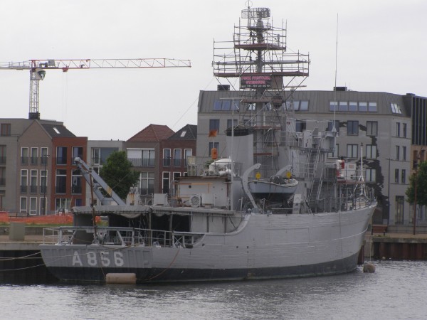 As a memory to the naval shipbuilding in Vlissingen, the small 1950's-built A856 HrMs Mercuur is docked right next to the Dock of Perry. She is a torpedo-workship and designated to become a museum soon to come.