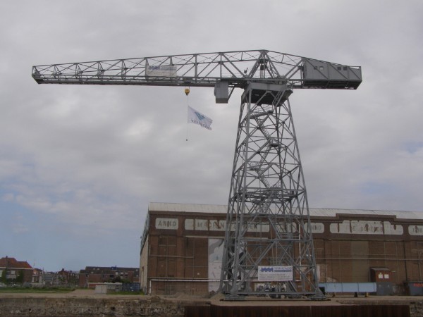 Very recently, just in may of 2019, this crane was replaced to the dockside where the ships were finished after their launch. I was very happy to see this crane in full glory again, as it is considered a true landmark for the history of the town of Vlissingen and the shipbuilding in general. Behind the crane you can see the large engine-works building, which is also intact.